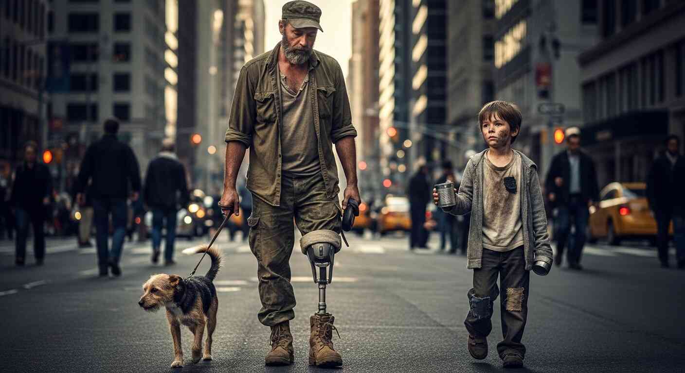 “Almost there, buddy,” Elias whispered, patting the faded olive-drab cap on his head. “Just two more blocks to the park.”