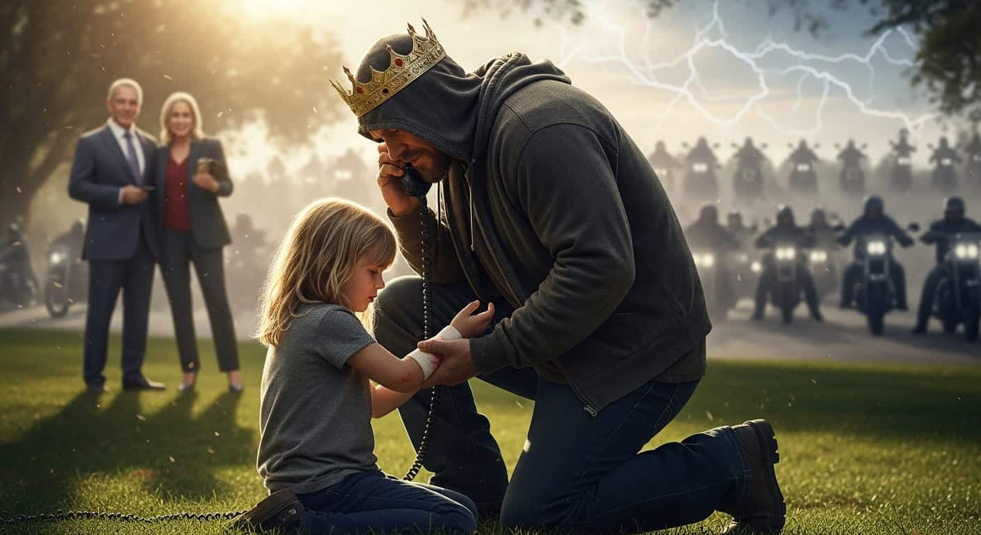A fleet of black SUVs and chrome-heavy motorcycles rounded the corner, cutting off the traffic on both sides of the street. It wasn’t a random group of bikers. This was the Iron Vanguard. They moved with military precision, the bikes peeling off to form a perimeter while the SUVs pulled right onto the grass of the park, their tires tearing into the manicured lawn.
