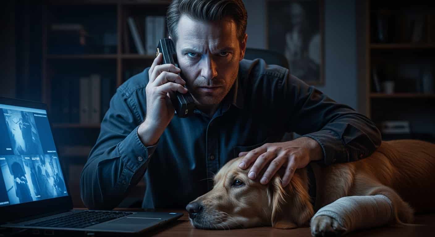The grainy black-and-white footage on my laptop screen felt like a physical blow to my chest. I sat in my home office, the only sound the frantic ticking of the clock on the wall and the heavy, labored breathing of Cooper, our Golden Retriever, who was curled up at my feet with a temporary cast on his hind leg.