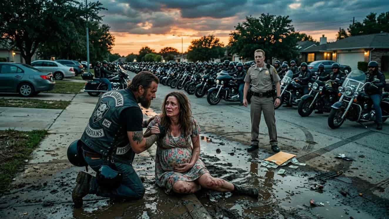 Vance’s hand stayed on his holster, but his fingers were twitching. He looked past me at the wall of leather and denim. These weren’t just “”bikers.”” These were men like Big Sal, a former combat medic with arms the size of tree trunks, and “”Doc”” Halloway, who had patched up more bullet holes than Vance had ever seen.