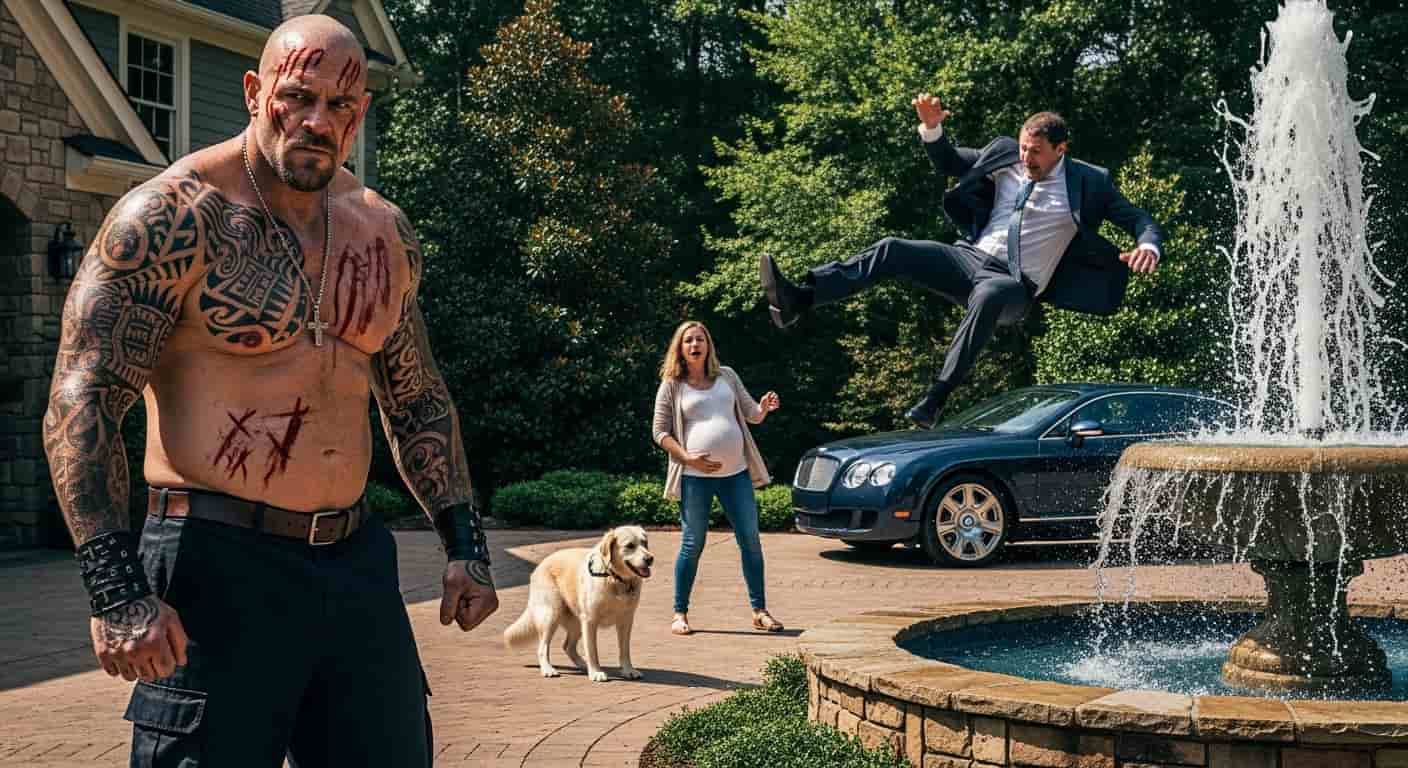 The silence that followed the splash was heavier than the heat. I could feel the vibration of the neighborhood—the collective intake of breath from behind manicured hedges and curtained windows. In this part of town, “”conflict”” usually meant a dispute over the height of a fence or a strongly worded letter to the HOA. It didn’t involve a 240-pound man being launched into a fountain like a sack of wet flour.