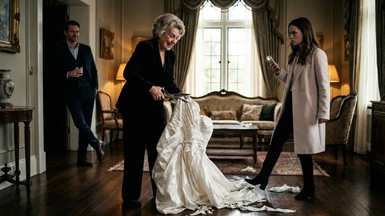 I stood there, paralyzed, as my mother-in-law, Evelyn, took the heavy kitchen shears to the bodice of my Vera Wang. It wasn’t just a dress. It was the gown I was supposed to wear for our ten-year vow renewal tomorrow. It was the gown she knew I’d spent months sourcing.