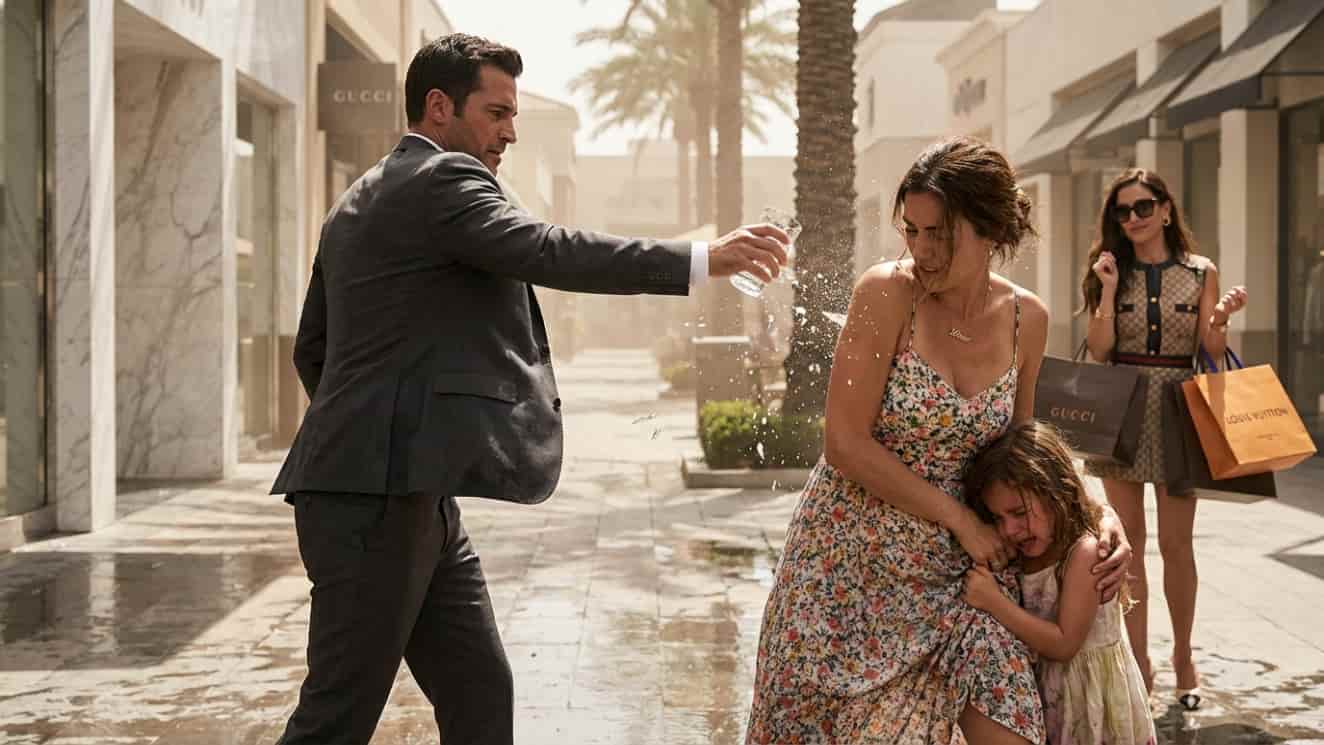 The sound of shattering glass echoed off the marble storefronts. Lily screamed. Chloe smirked.
