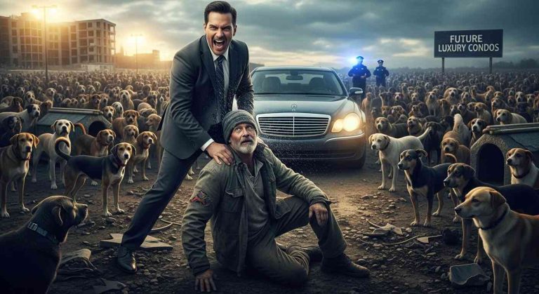 THE BULLY KICKED THE OLD MAN’S TIN CUP ACROSS THE STREET, LAUGHING AS THE FEW COINS SCATTERED INTO…
