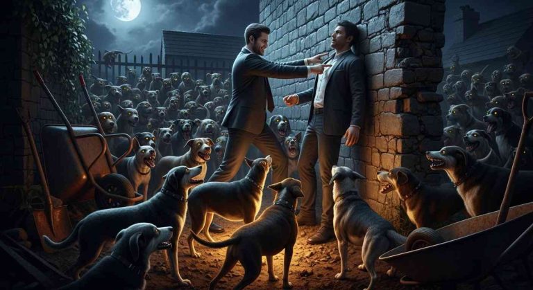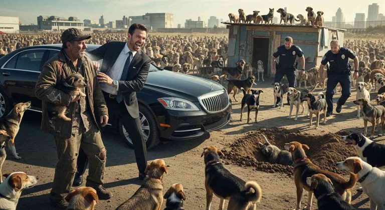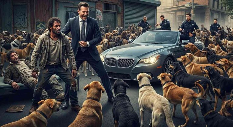 THE BULLY KICKED THE OLD MAN’S TIN CUP ACROSS THE STREET, LAUGHING AS THE FEW COINS SCATTERED INTO THE SEWER WHILE HE PUSHED THE FRAIL MAN ONTO THE CONCRETE. BUT THE CELEBRATION ENDED ABRUPTLY WHEN A HUNDRED PROTECTORS ROSE FROM THE DARKNESS. 🐕🔥🪙